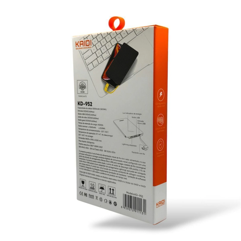 O Carregador Portátil Power Bank 5000mAh Kaidi é a solução ideal para quem busca praticidade e eficiência no dia a dia. Com um design elegante e compacto na cor preta, ele se adapta facilmente ao seu estilo de vida, permitindo que você carregue seus dispositivos móveis a qualquer hora e em qualquer lugar.